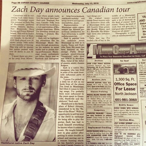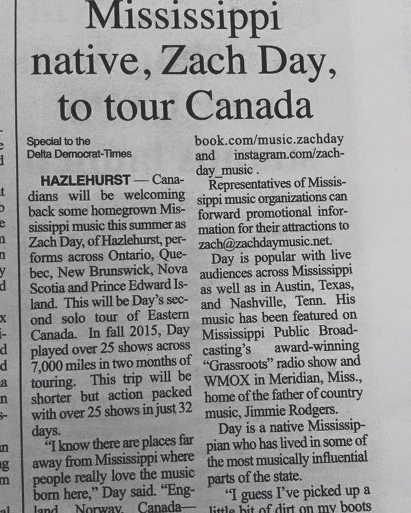 Zach Day was born and raised in Mississippi splitting most of his time between Greenville and Hazlehurst. He is a self-taught musician, singer, songwriter and businessman. Zach has completed solo tours in Canada and across the U.S. multiple times and has also performed as a headliner in the Blues Alive Festival in the Czech Republic in 2019. You can find his album "Mississippi Heat" on all streaming platforms and in five separate independent films produced in Mississippi and Texas.